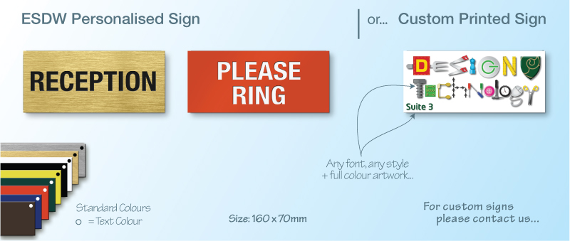 These small, discreet signs can be printed or engraved with personalised text of your choice, on one or two lines..