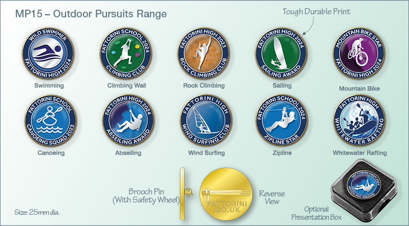 MP15 "Outdoor Pursuits" Sports badges + 2 lines of text
