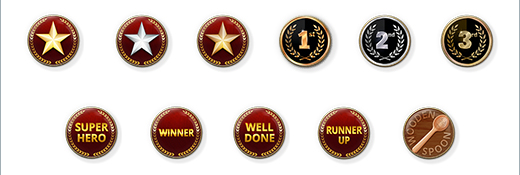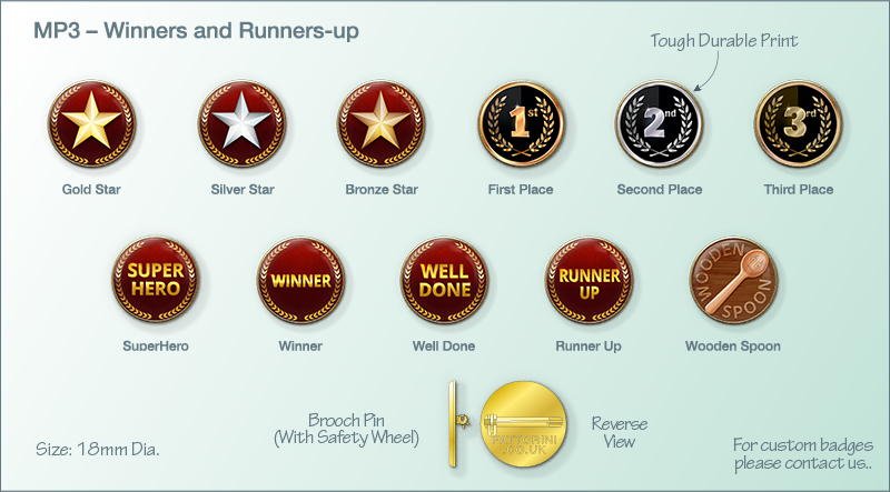 Star - Gold, Silver or Bronze, 1st, 2nd, 3rd, Runner up, Winner, Well done, Wooden Spoon, and Super hero