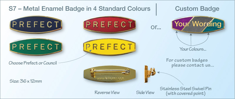 S7 Badge – metal enamelled school Prefect and Council badge.